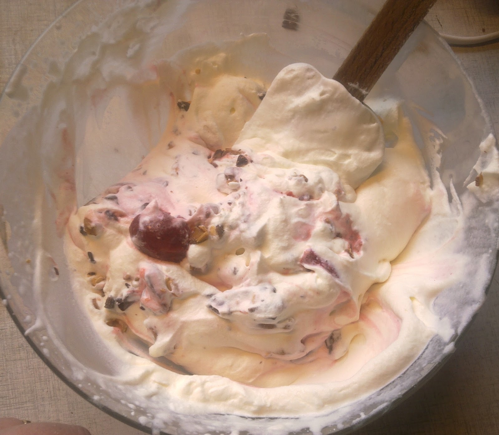 Pisk 1/2 l. af flødeskum indtil stift. ( kan osse være lidt mindre)